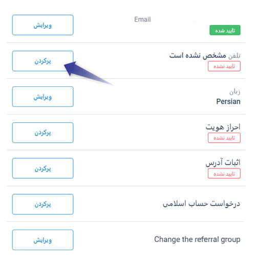 بر روی (پر کردن) در قسمت احراز هویت کلیک کنید.