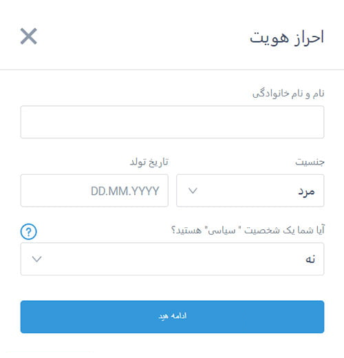 پس از پر کردن این فرم، باید مدارک احراز هویت خود را آپلود کنید.