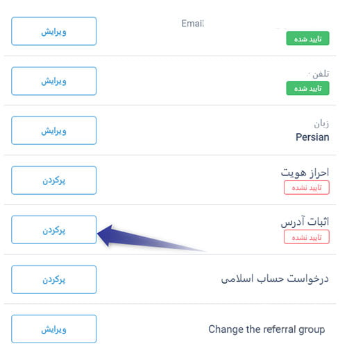 پس از انجام مراحل احراز هویت باید مدارک تائید آدرس را آپلود کنید.