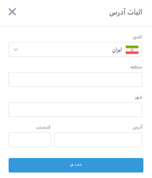 در این مرحله باید آدرس خود را به‌صورت صحیح به همراه کد پستی، وارد کنید.